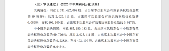 关于分红,红星资本局注意到,此次大会审议通过了《2025年中期利润分配预案》,表决情况显示同意2331422068股,占出席本次股东会有效表决权股份总数的99.8959%;反对2025411股,占出席本次股东会有效表决权股份总数的0.0868%。