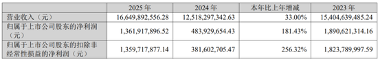 2025年,天赐材料(002709.SZ,公司)交出了一份看似“炸裂”的成绩单:营收166.5亿元,同比增长33%;归母净利润更是暴增181%,达到13.6亿元。