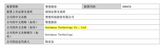 根据智度股份2025年半年报,Genimous Technology Co.,Ltd.正是智度股份的外文名称,而Genimous Interactive、Eightpoint等也与智度股份的相关下属公司对应。同时,“Hongda Lu”也与智度股份的前董事长陆宏达的拼音一致。